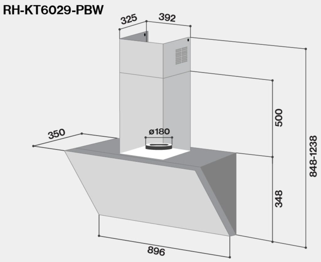 RH-KT6029-PBW 90cm Slanted Hood Key Features: 2,060m³/hr Suction Power DC Inverter Motor Heat Clean 2 Speed Settings + Booster Delay Timer Wave Control LED Touch Sensor Cont...