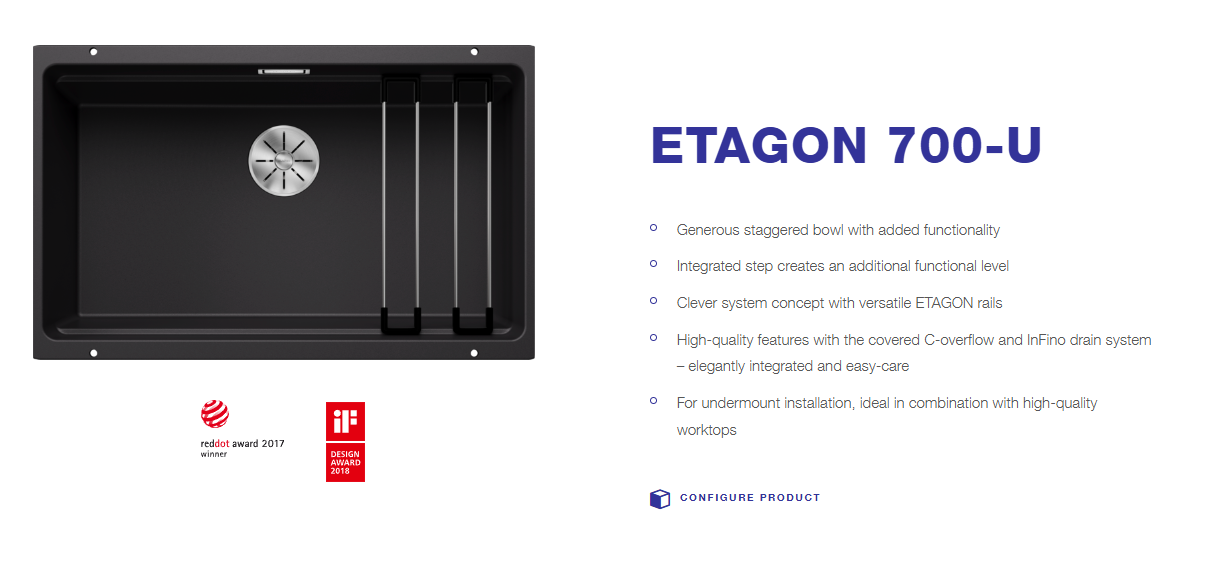 THE KUTCHENHAUSS DESIGN SDN. BHD. Products BLANCO - 73cm Undermount Kitchen Granite Sink Single Bowl Come With Top Rail | ETAGON 700-U